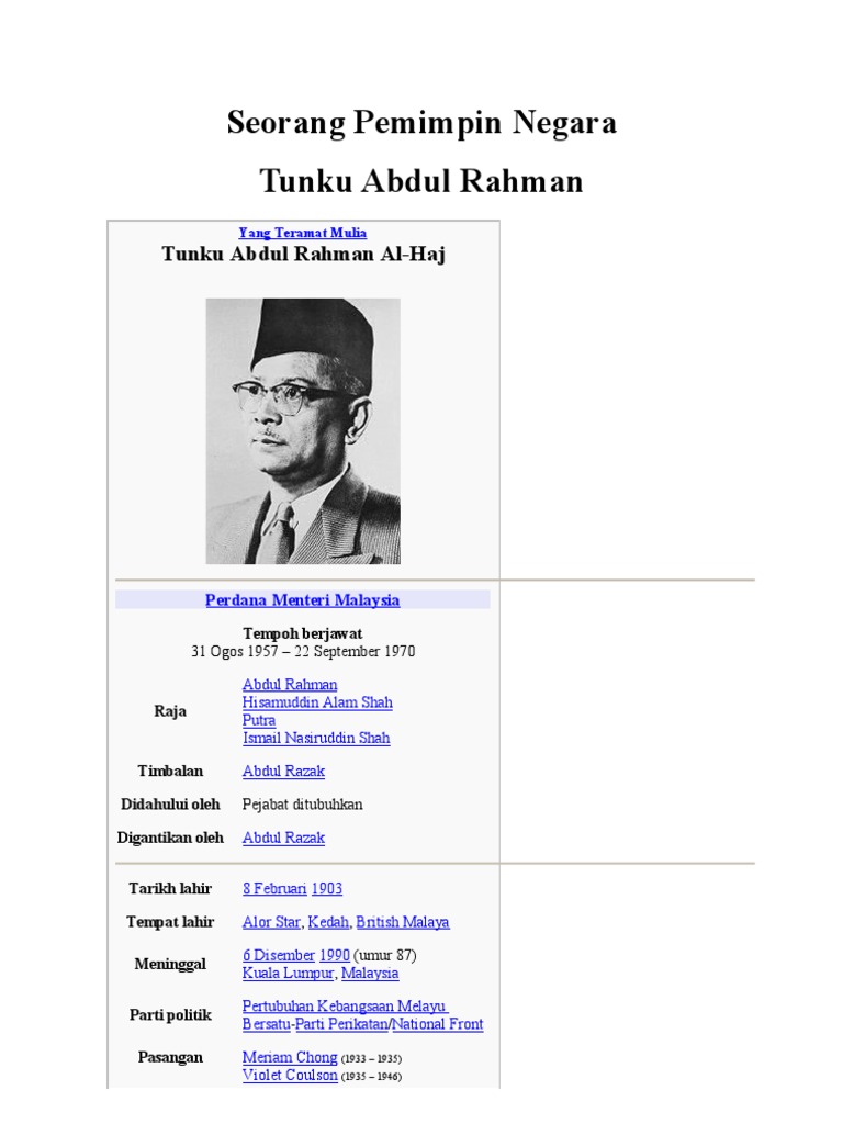 Biodata Tokoh Tunku Abdul Rahman Pdf